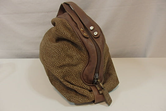 ボルボネーゼ BORBONESE ハンドバッグ バーズアイ うずら柄 ラウンド型 ドーム レザー×スエード ブラウン 茶 手提げ バッグ 婦人 レディース 【中古】【送料無料】 sh620