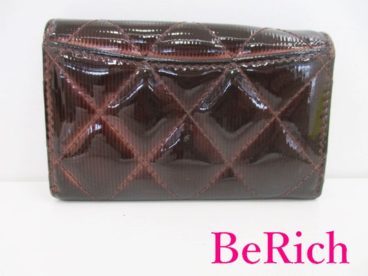 シャネル キーケース マトラッセ 茶 ブラウン エナメル パテント レザー キーホルダー CHANEL 【中古】【送料無料】 bc1852