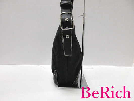 コーチ COACH ショルダーバッグ 6076 シグネチャー ダッフル 黒 ブラック キャンバス レザー ロゴ 鞄 【中古】【送料無料】 bk6745
