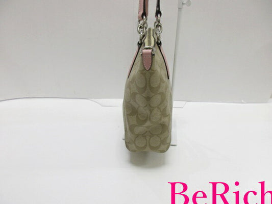 コーチ COACH 2way ショルダーバッグ トートバッグ F28989 シグネチャー スモール ケルシー サッチェル カーキ ピンク ロゴ ハンドバッグ 鞄 【中古】【送料無料】 bk7531