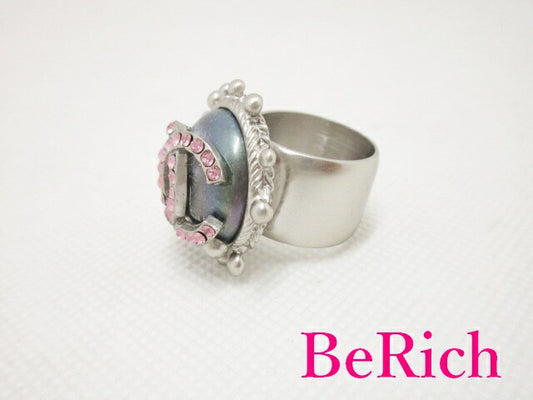 シャネル CHANEL ロゴ ココマーク リング 指輪 13号 シルバー フェイク パール ピンク ジュエリー アクセサリー 【中古】【送料無料】 ba2393