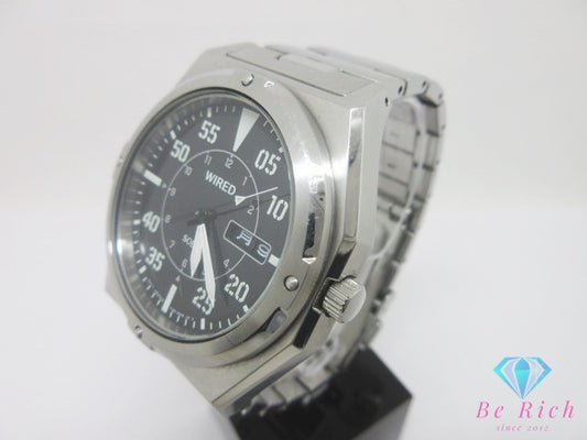 セイコー SEIKO ワイアード ソーラー メンズ 腕時計 デイデイト V158-0AP0 黒 ブラック シルバー SS ブレス アナログ クォーツ QZ ウォッチ WIRED 【中古】【送料無料】 ht6772