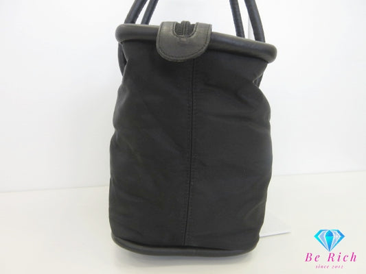 セリーヌ CELINE サークル ロゴ トートバッグ ブラック 黒 ロゴ ナイロン レザー ハンドバッグ 鞄 【中古】【送料無料】 bk10194