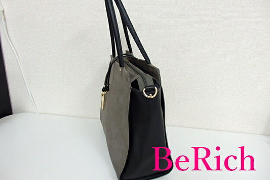 モノコムサ MONO COMME CA ハンドバッグ トートバッグ グレー ブラック スエード レザー ロゴ ショルダーバッグ 手提げ 肩掛け 鞄 【中古】【送料無料】 sh1297