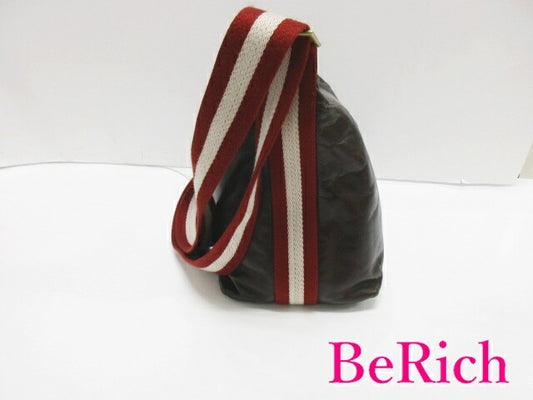 バリー トレインスポッティング ショルダーバッグ 茶 ブラウン ストライプ レザー BALLY 【中古】【送料無料】bk8007