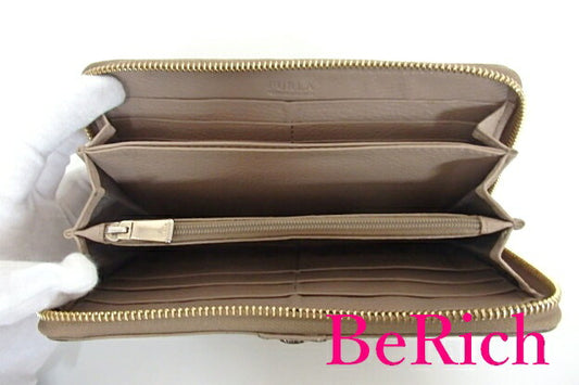 フルラ FURLA ラウンド ファスナー 長財布 ベージュ レザー ロゴ 二つ折り財布 ロング ウォレット 【中古】【送料無料】sh1253