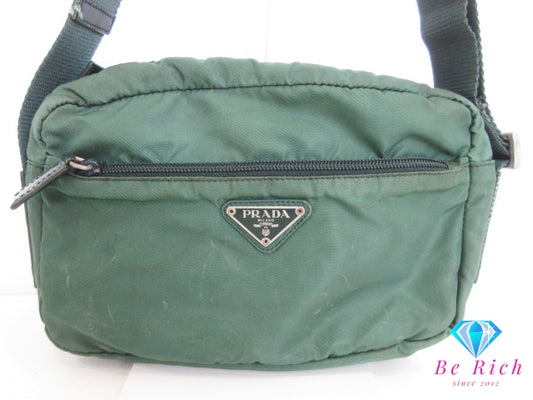 プラダ PRADA ショルダーバッグ カーキ グリーン 緑 ナイロン レザー 三角 プレート ロゴ クロスボディ 斜め掛け 鞄 【中古】【送料無料】 bk9565