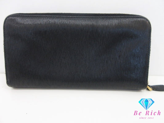 プラダ PRADA ラウンド ファスナー 二つ折り財布 長財布 ネイビー 紺 サフィアーノ 三角 プレート ロゴ ロング ウォレット 【中古】【送料無料】bs2399