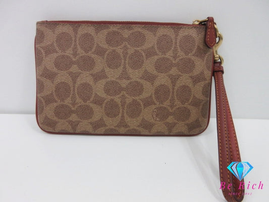 コーチ COACH スモール リストレット シグネチャー キャンバス マルチ ポーチ CI189 茶 ブラウン PVC レザー ロゴ アクセサリー メイク 小物 【中古】【送料無料】 bc2304