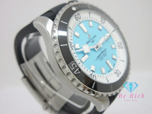 美品 ブライトリング BREITLING スーパー オーシャン 44 A17376 自動巻き メンズ 腕時計 デイト ホワイト ライト ブルー ブラック SS ラバー ブレス アナログ オートマ AT ウォッチ Super Ocean 水色 黒 【中古】【送料無料】 bt3495