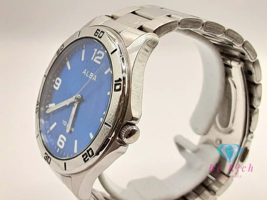 セイコー SEIKO アルバ メンズ 腕時計 VJ21-KNF0 青 ブルー シルバー SS ブレス アナログ クォーツ QZ ウォッチ ALBA 【中古】【送料無料】 ht5932