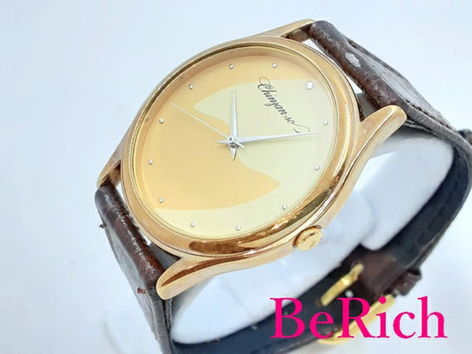 chingan-so ペア ウォッチ 腕時計 P2150 アイボリー ゴールド 文字盤 SS レザー アナログ クォーツ QZ レディース メンズ 【中古】【送料無料】 ht3733
