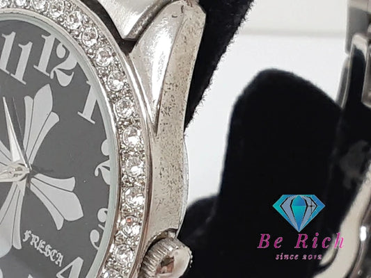 フレスカ FRESCA メンズ 腕時計 E91138 黒 ブラック SS ブレス ラインストーン アナログ クォーツ QZ ウォッチ 【中古】【送料無料】ht3803