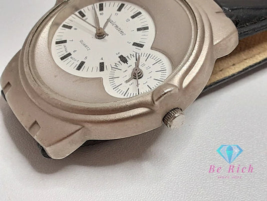 バレンタイン Valentine メンズ 腕時計 シルバー ホワイト 白 黒 ブラック SS レザー ブレス ロゴ アナログ クォーツ QZ ウォッチ 【中古】【送料無料】 ht5734