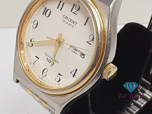 オリエント ORIENT スイマー 100 メンズ 腕時計 デイデイト UG00-B0 白 ホワイト シルバー ゴールド SS GP ブレス アナログ クォーツ QZ ウォッチ SIMMER 【中古】【送料無料】 ht5766