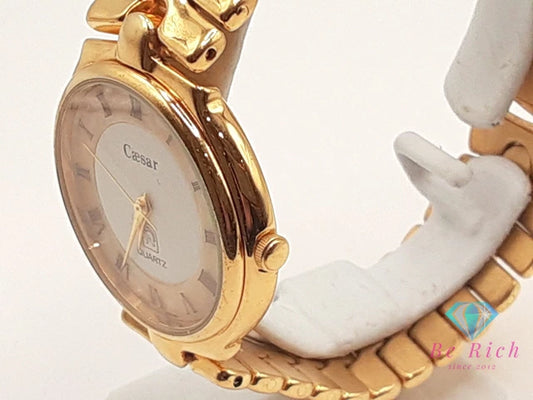 シーザー caesar ボーイズ 腕時計 白 ホワイト ゴールド SS GP ブレス アナログ クォーツ QZ ドレス ウォッチ ユニセックス メンズ レディース 【中古】【送料無料】ht5911
