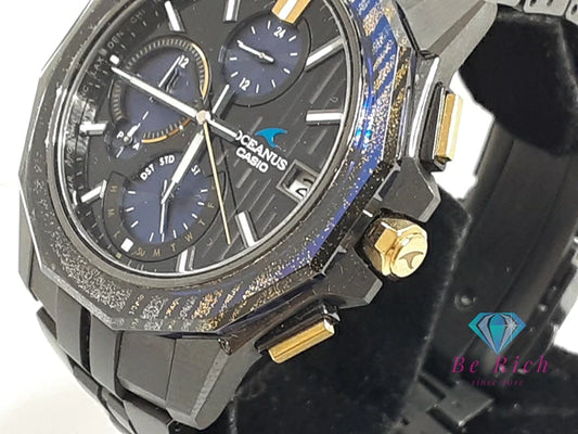 美品 カシオ CASIO オシアナス マンタ OCW-S6000 電波 ソーラー メンズ 腕時計 ブラック ブルー 黒 青 シルバー チタン ブレス アナログ クォーツ QZ ウォッチ 【中古】【送料無料】 ht5968