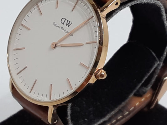 ダニエル ウェリントン Daniel Wellington クラシック 36MM 腕時計 B36R9 白 ホワイト 茶 ブラウン SS レザー ブレス アナログ クォーツ QZ ウォッチ DW CLASSIC 【中古】【送料無料】 ht5373