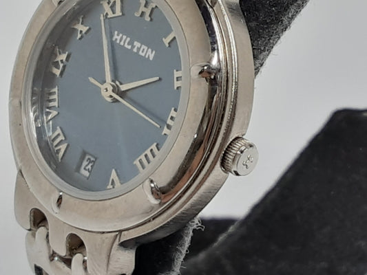 ヒルトン HILTON レディース 腕時計 デイト HQ0537 ラウンド 青 ブルー シルバー SS ブレス アナログ クォーツ QZ ウォッチ 【中古】【送料無料】 ht5392
