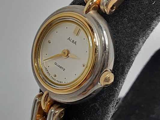 セイコー SEIKO アルバ レディース 腕時計 Y520-0A20 白 ホワイト シルバー ゴールド SS GP ブレス アナログ クォーツ QZ ウォッチ ALBA 【中古】【送料無料】ht5409