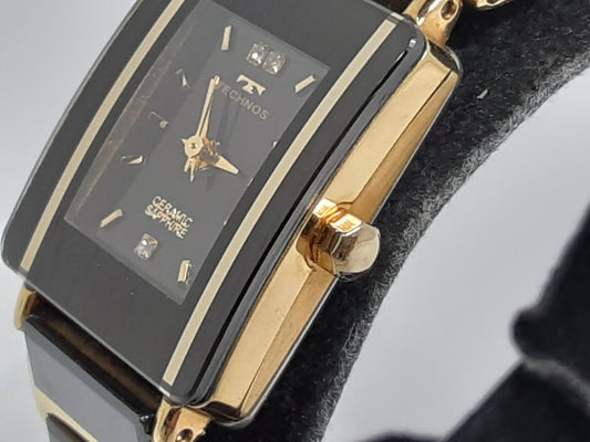 テクノス TECHNOS レディース 腕時計 T9796 黒 ブラック ゴールド SS ブレス アナログ クォーツ ウォッチ QZ 【中古】【送料無料】 ht5429