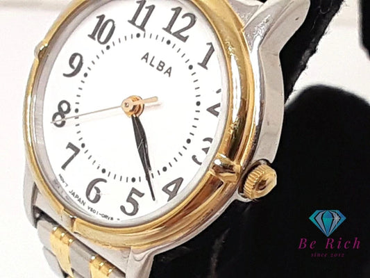 セイコー SEIKO アルバ ALBA レディース 腕時計 V501-0FC0 ラウンド 白 ホワイト シルバー ゴールド SS GP ブレス アナログ クオーツ QZ ウォッチ 【中古】【送料無料】 ht6170