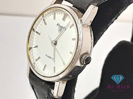 ニバダ Nivada シルバー 925 銀無垢 レディース 腕時計 N-920818 白 ホワイト ブラック 黒 レザー ブレス アナログ クォーツ QZ ウォッチ SILVER 【中古】【送料無料】 ht6192