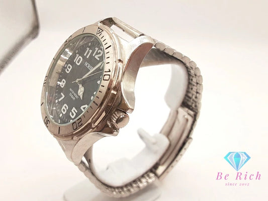 ジェイアクシス J-AXIS スクリプト メンズ 腕時計 黒 ブラック シルバー SS ブレス アナログ クォーツ QZ ウォッチ SCRIPT 【中古】【送料無料】 ht6322