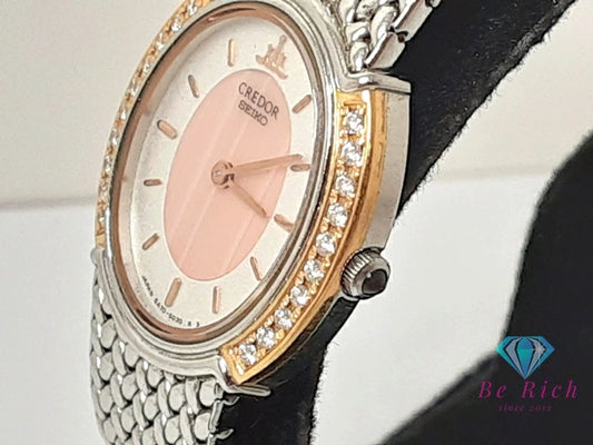 セイコー クレドール SEIKO CREDOR K18 YG ダイヤ ベゼル レディース 腕時計 5A70-3000 白 ホワイト ピンク シルバー SS ブレス クォーツ QZ アナログ ウォッチ 【中古】【送料無料】 bt3404