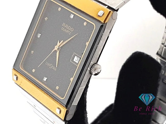 ラドー RADO ダイアスター メンズ 腕時計 デイト 129.0155.3 スクエア 黒 ブラック SS ブレス アナログ クォーツ QZ ウォッチ DIASTAR ダイヤスター 【中古】【送料無料】 bt3413