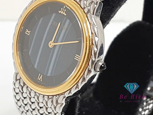 セイコー クレドール SEIKO CREDOR K18KT ベゼル ブルー メノウ ダイヤル レディース 腕時計 5A70-0260 黒 ブラック シルバー SS ブレス クォーツ QZ アナログ ウォッチ 18金 YG 服部 HATTORI 【中古】【送料無料】 bt3422
