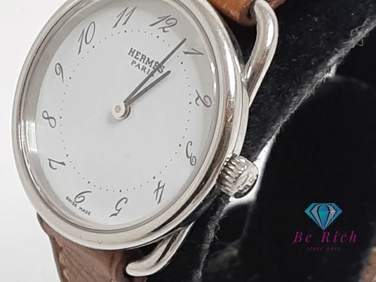 エルメス HERMES アルソー AR3.210 レディース 腕時計 白 ホワイト 茶 ブラウン SS レザー ブレス ロゴ アナログ クォーツ QZ ウォッチ Arceau 【中古】【送料無料】 bt3425