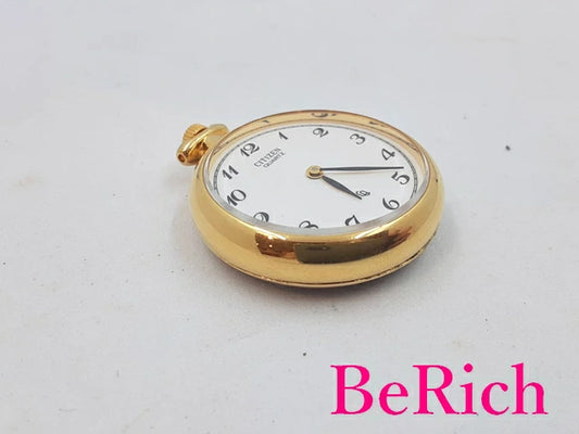 シチズン CITIZEN ポケットウォッチ 懐中時計 白 ホワイト 文字盤 GP ( メッキ ) アナログ クォーツ QZ ウォッチ 和小物 【中古】【送料無料】 ht5027