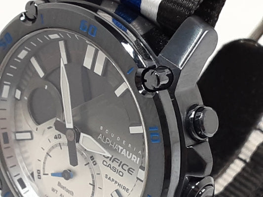 美品 カシオ CASIO エディフィス スクーデリア アルファタウリ メンズ 腕時計 ECB-20AT-2AJR 黒 ブラック シルバー ネイビー 紺 SS レザー ブレス モバイルリンク アナログ デジタル クォーツ QZ ウォッチ 【中古】【送料無料】 ht5431