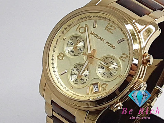 マイケルコース MICHAEL KORS ランウェイ クロノグラフ レディース 腕時計 MK5659 シャンパン ゴールド ハバナ ブラウン 茶 SS プラスチック アナログ クォーツ QZ ウォッチ 【中古】【送料無料】 ht4428
