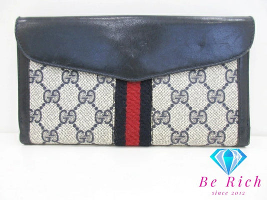 グッチ GUCCI Wホック 長財布 GG ネイビー 紺 シェリー ウェブ ロゴ PVC キャンバス レザー 二つ折り財布 ロング ウォレット オールド ヴィンテージ 【中古】【送料無料】 bs3227