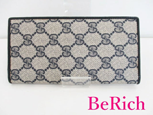 グッチ GUCCI 長財布 札入れ 0103.713 GG ネイビー 紺 キャンバス レザー ロゴ オールド ヴィンテージ 二つ折り財布 ロング ウォレット 【中古】【送料無料】bs3334