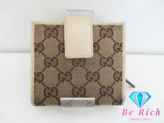 グッチ GUCCI Wホック 二つ折り財布 146568 GG カーキ アイボリー キャンバス レザー ロゴ コンパクト ウォレット 【中古】【送料無料】bs3336