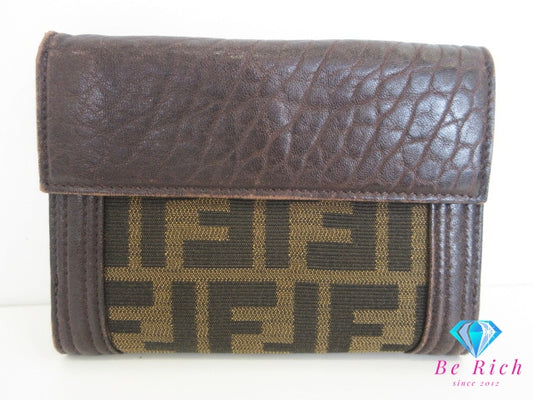 フェンディ FENDI 二つ折り財布 8M0160 ズッカ ブラウン 茶 ブラック 黒 キャンバス レザー コンパクト ウォレット 中財布 【中古】【送料無料】 bs4276