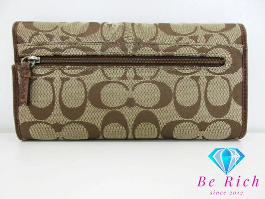 コーチ COACH 三つ折り財布 長財布 42814 プリーテッド シグネチャー チェックブック 付 キャンバス レザー ロゴ 二つ折り財布 ロング ウォレット 【中古】【送料無料】bs2966