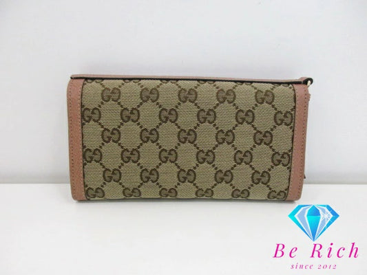 美品 グッチ GUCCI 二つ折り 長財布 323396 GG キャンバス 茶 ブラウン ベージュピンク ロゴ レザー ロング ウォレット 【中古】【送料無料】bs3622