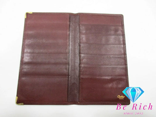 カルティエ Cartier メンズ 長財布 札入れ マスト ライン ボルドー レザー ロゴ 小銭入れなし 二つ折り財布 ロング ウォレット 【中古】【送料無料】 bs3634