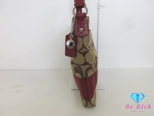 コーチ COACHショルダーバッグ F18862 シグネチャー ワインレッド 茶 ブラウン キャンバス レザー ロゴ 肩掛け 斜め掛け 鞄 【中古】【送料無料】 bk10333