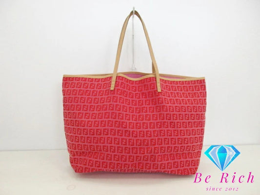 フェンディ FENDI トートバッグ 8BH005 ズッキーノ ピンク レッド 赤 キャンバス レザー ロゴ ショルダーバッグ ハンドバッグ 手提げ 鞄 【中古】【送料無料】 bk8973
