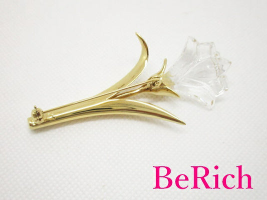 スワロフスキー SWAROVSKI 花 フラワー モチーフ ピン ブローチ クリア ゴールド クリスタル ガラス ジュエリー アクセサリー 【中古】【送料無料】 ba2098