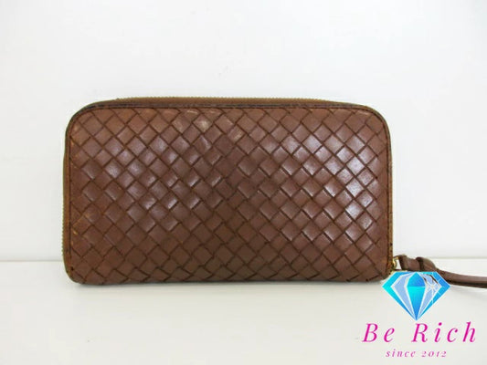 ボッテガ ヴェネタ BOTTEGA VENETA ラウンド ファスナー 長財布 イントレチャート レザー ゴールド ロゴ 二つ折り財布 ロング ウォレット 【中古】【送料無料】bs3759