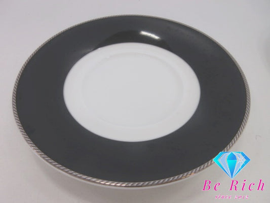 ノリタケ NORITAKE エイダン ティー カップ & ソーサー 2客 セット ホワイト 白 ブラック 黒 シルバー ペア 陶器 コップ 皿 紅茶 食器 テーブル ウェア 製陶 【中古】【送料無料】 bh2813