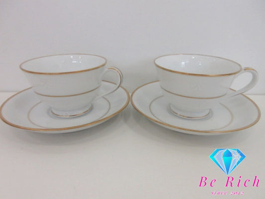 ノリタケ NORITAKE カップ & ソーサー 2客 セット ホワイト 白 ゴールド シルバー ペア 陶器 コップ 皿 食器 テーブル ウェア 製陶 【中古】【送料無料】 bh2760