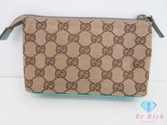 グッチ GUCCI ポーチ 115237 GG キャンバス レザー ベージュ ミントグリーン ロゴ マルチ ケース 小物 【中古】【送料無料】 bc2060