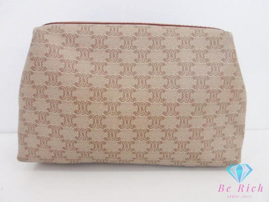 セリーヌ CELINE ポーチ マカダム ベージュ PVC レザー ロゴ 化粧 コスメ ファッション 小物 【中古】【送料無料】 bc2122